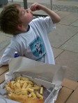 - Charlie enjoying the finest fish-and-chips from his auntie’s deservedly popular shop, Barracuda (plug alert: http://www.barracudaonline.co.uk/)